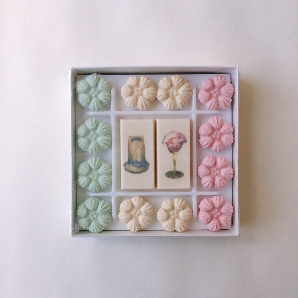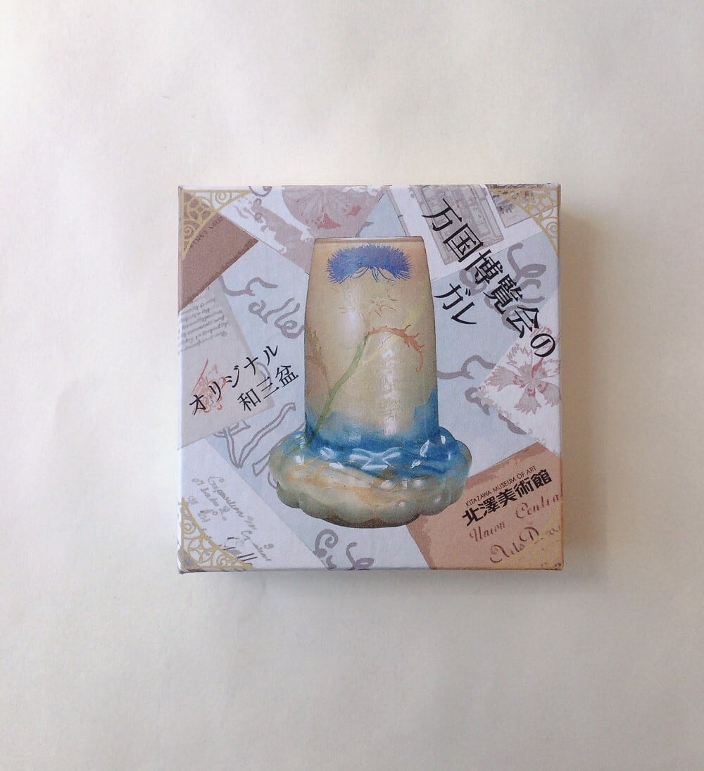 現在開催中の「特別展 万国博覧会のガレ」より、オリジナルパッケージ和三盆です。展示作品の中から「あざみ」をメインにデザインしました。さらりとした口どけのさぬき和三盆をお楽しみください。