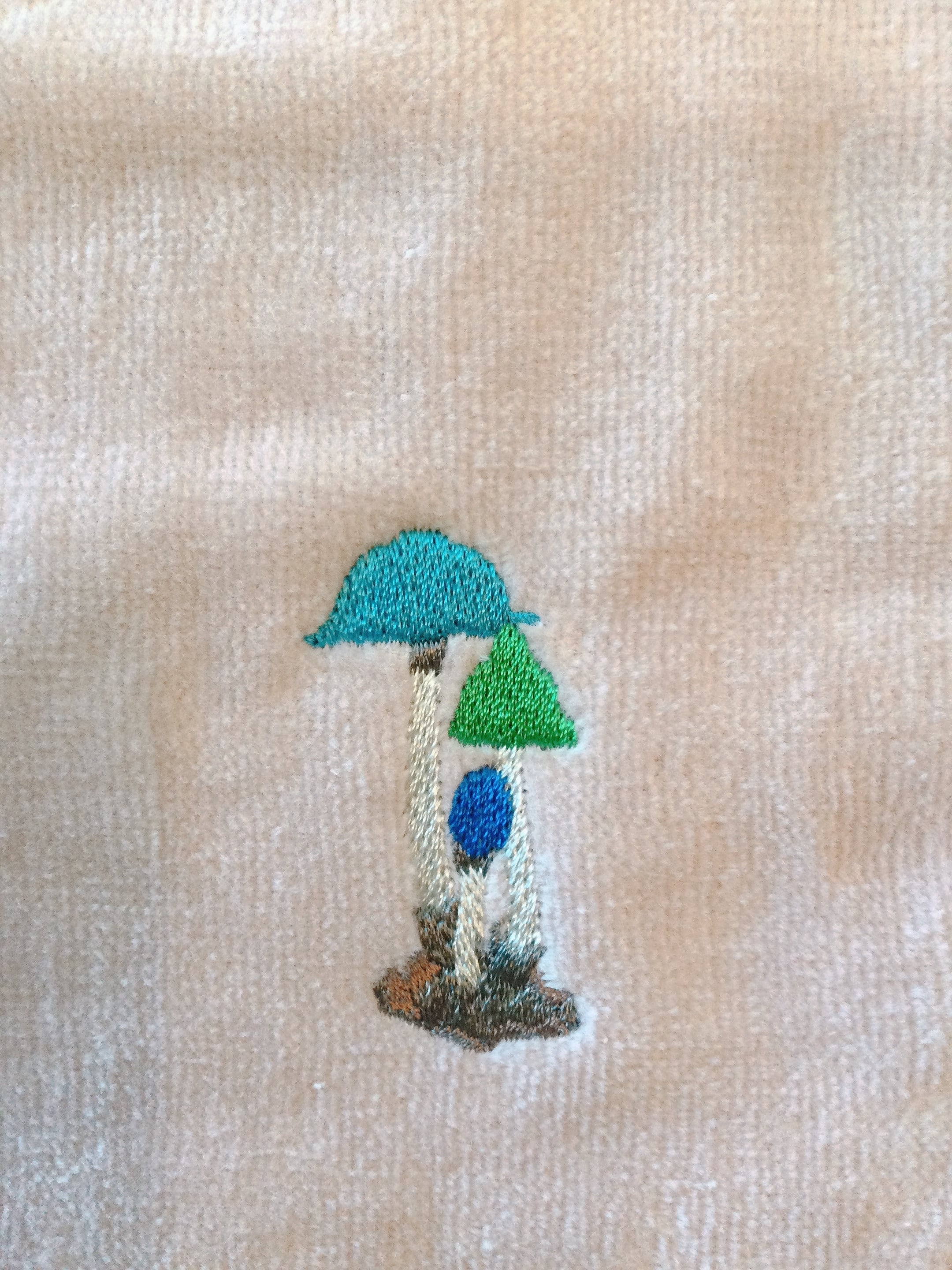 当館代表作「ひとよ茸ランプ」の刺繍をあしらったタオルハンカチ♪柔らかい手触りで使い心地抜群です♪